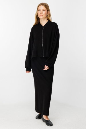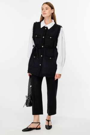 Önden Düğmeli Tüvit Siyah Pantolon Takım