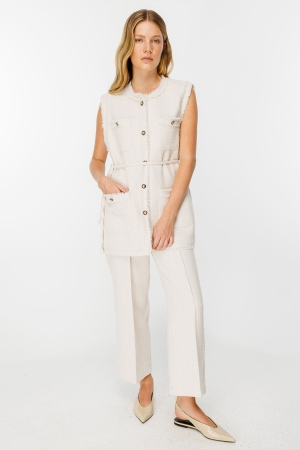 Önden Düğmeli Tüvit Krem Pantolon Takım