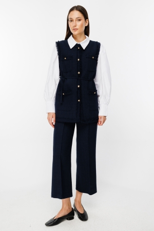 Önden Düğmeli Tüvit Lacivert Pantolon Takım