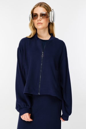 Fermuar Detaylı Bomber Lacivert Ceket