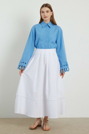 Pile Kırma Beyaz Etek