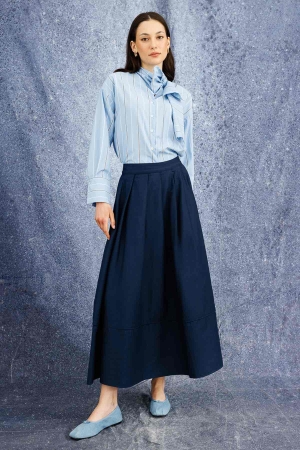 Pile Kırma Lacivert Etek