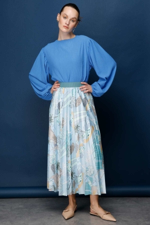 Baskılı Piliseli Bebe Mavisi Etek