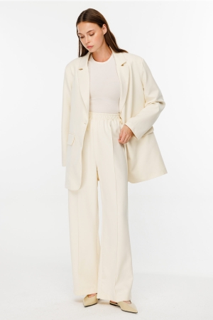 Nervürlü Krem Krep Pantolon