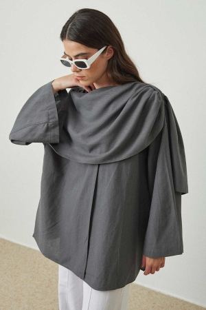 Şal Aksesuarlı Antrasit Keten Ceket