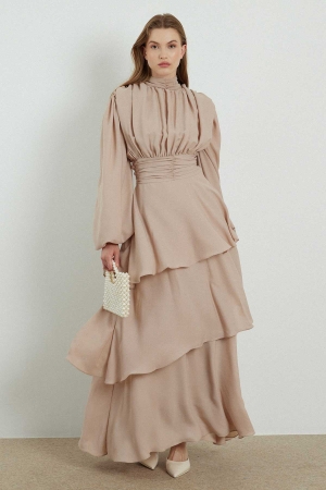 Arabia Bej Şifon Elbise