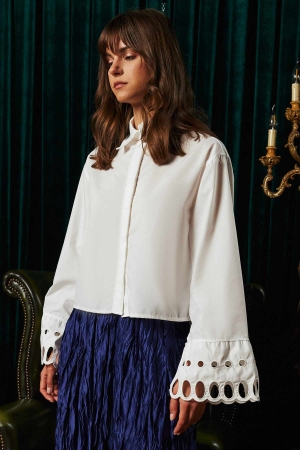 Nakış İşlemeli Detaylı Ekru Gömlek