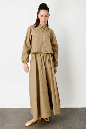 Fermuar Detaylı Paraşüt Takım - Vizon