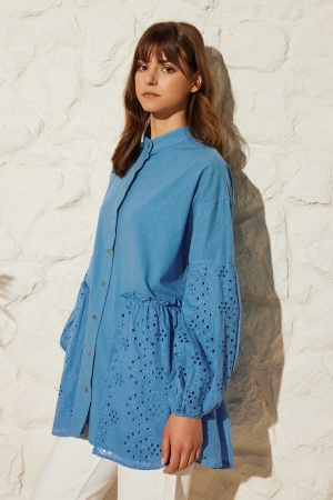 Kolları Pile Detaylı Mix Mavi Gömlek