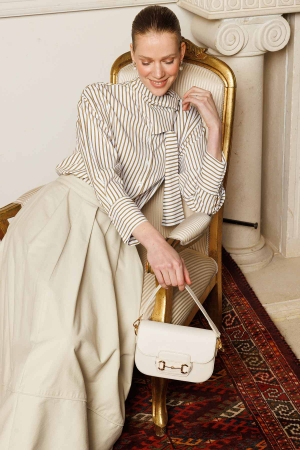 Fular Yaka Gömlek - Ekru