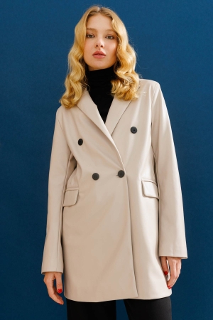 Kruvaze Deri Blazer Ceket - Bej