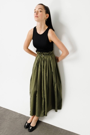 Limited Ayarlanabilir Bel Detaylı Koyu Yeşil Etek