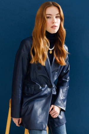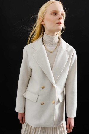 Gold Düğme Detaylı Kaşe Taş Blazer Ceket