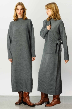 Anvelop Triko Elbise - Füme