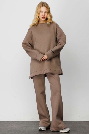 Dikiş Detaylı Üç İplik Takım - Vizon
