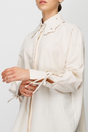 Yakası Çiçek Nakışlı Gömlek - Bej