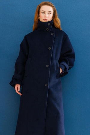 Kruvaze Kaşe Kaban - Lacivert