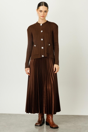 Şal Yaka Biyeli Triko Hırka - Siyah