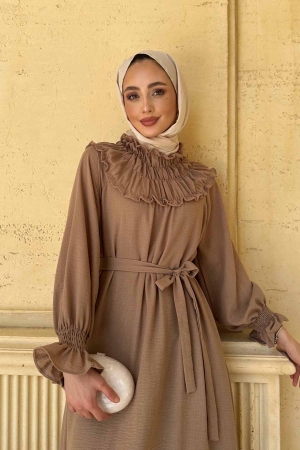 Basic Bisiklet Yaka Oversize Sweatshirt - Camel