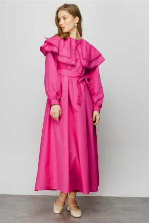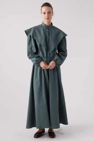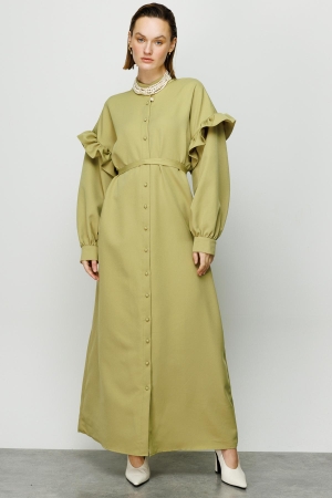 Kolları Fırfırlı Düğmeli Elbise - Olive