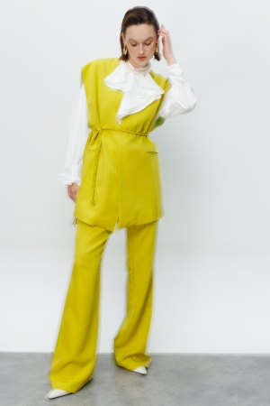Örgü Kemerli Yağ Yeşili Pantolon Takım