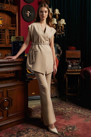 Örgü Kemerli Taş Pantolon Takım