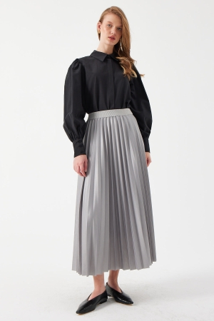 Deri Pilisoley Etek - Gri
