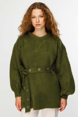 Kemerli Kuş Gözlü Koyu Haki Kazak