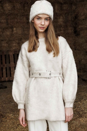 Kemerli Kuş Gözlü Krem Kazak
