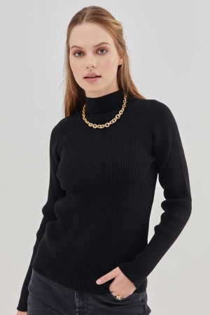 Yarım Balıkçı Fitilli Kazak - Siyah
