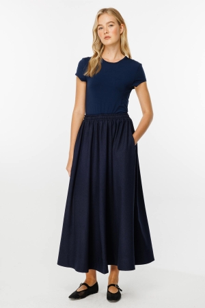Premium Büzgülü Lacivert Etek