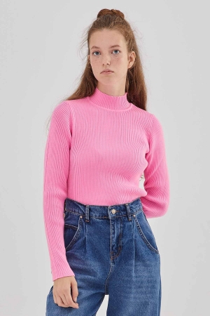 Yarım Balıkçı Fitilli Kazak - Pembe