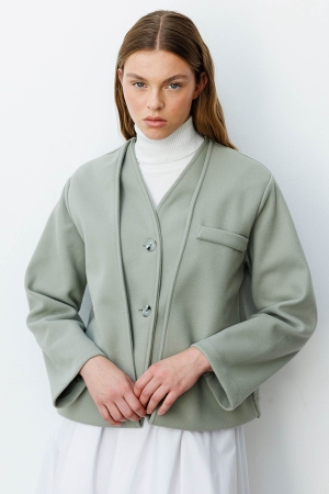 Trocape Yakasız Çağla Kaşe Ceket