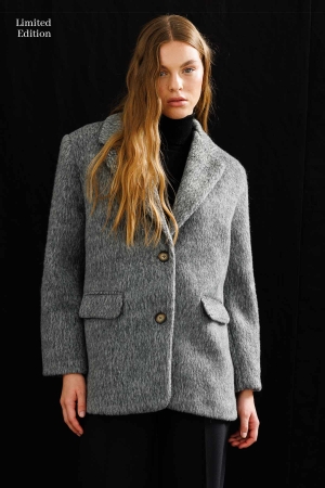 Alpaka Kruvaze Melanjlı Gri Blazer Ceket