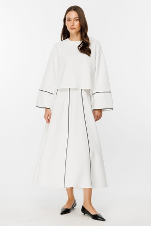 Biyeli Detaylı Scuba Beyaz Etek Takım