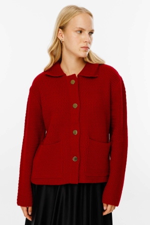 Gömlek Yaka Düğmeli Kırmızı Hırka