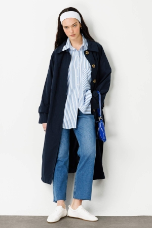 Kalıbı tam vücuda oturuyor uzun ve ince gösteriyor. Tarz olarak da çok cool. severek kullanıcam ilk trençkotum