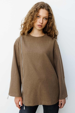 Fermuar Detaylı Kaşe Sütlü Kahve Sweatshirt