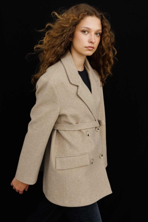 Kruvaze Kapamalı Kaşe Taş Blazer Ceket