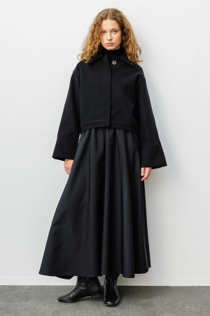 Andera Manşet Kol Siyah Kaşe Ceket
