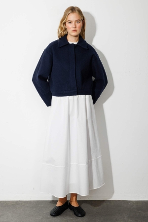 Andera Manşet Kol Lacivert Kaşe Ceket