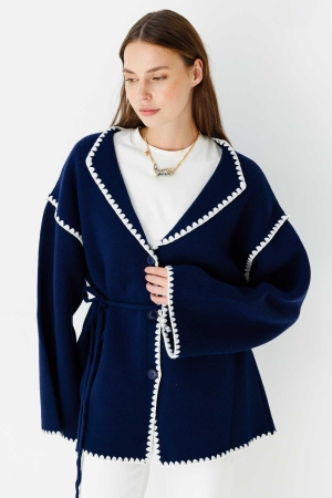 Biye İşleme Detaylı Lacivert Hırka