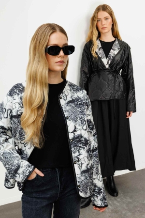 Çift Yönlü Kapitone Etnik Desen Ceket