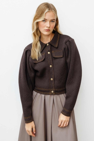 Metal Düğmeli Triko Bomber Kül Kahve Ceket