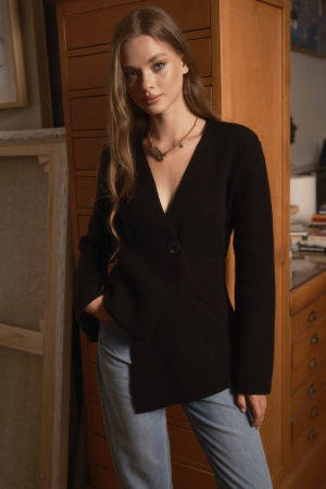 Tek Düğmeli Siyah Hırka