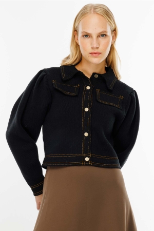 Metal Düğmeli Triko Bomber Siyah Ceket
