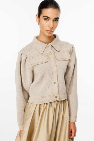 Metal Düğmeli Triko Bomber Kül Kahve Ceket