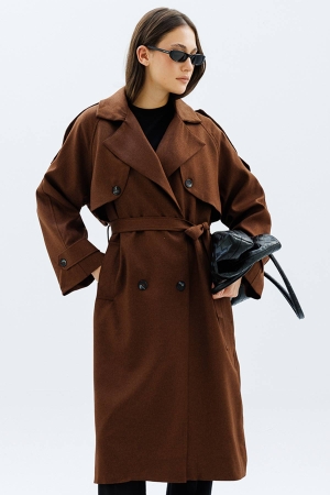 Premium Kruvaze Kahve Trençkot