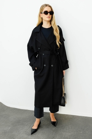 Premium Kruvaze Siyah Trençkot