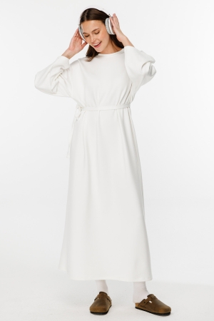 Oversıze Uzun Pamuklu Kırık Beyaz Elbise